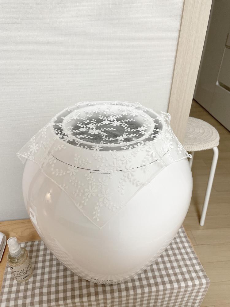 발뮤다 가습기인데, 요즘은 잘 안쓰는 계절이라 레이스로 덮어놓았어요:-)