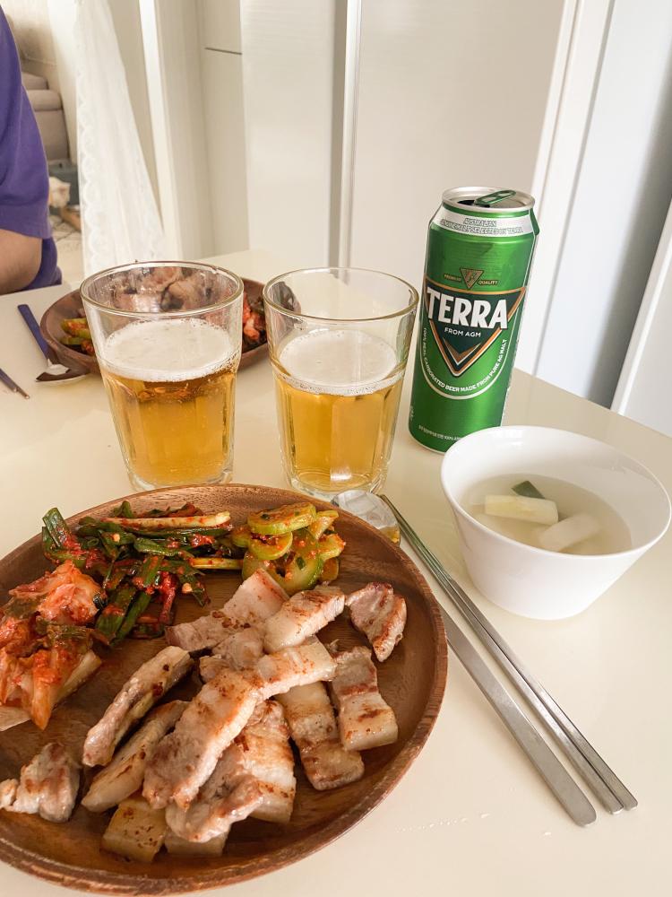 점심은 삼겹살을 구워 맥주와 함께 먹었어요!ㅎㅎ
