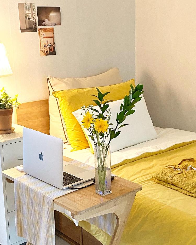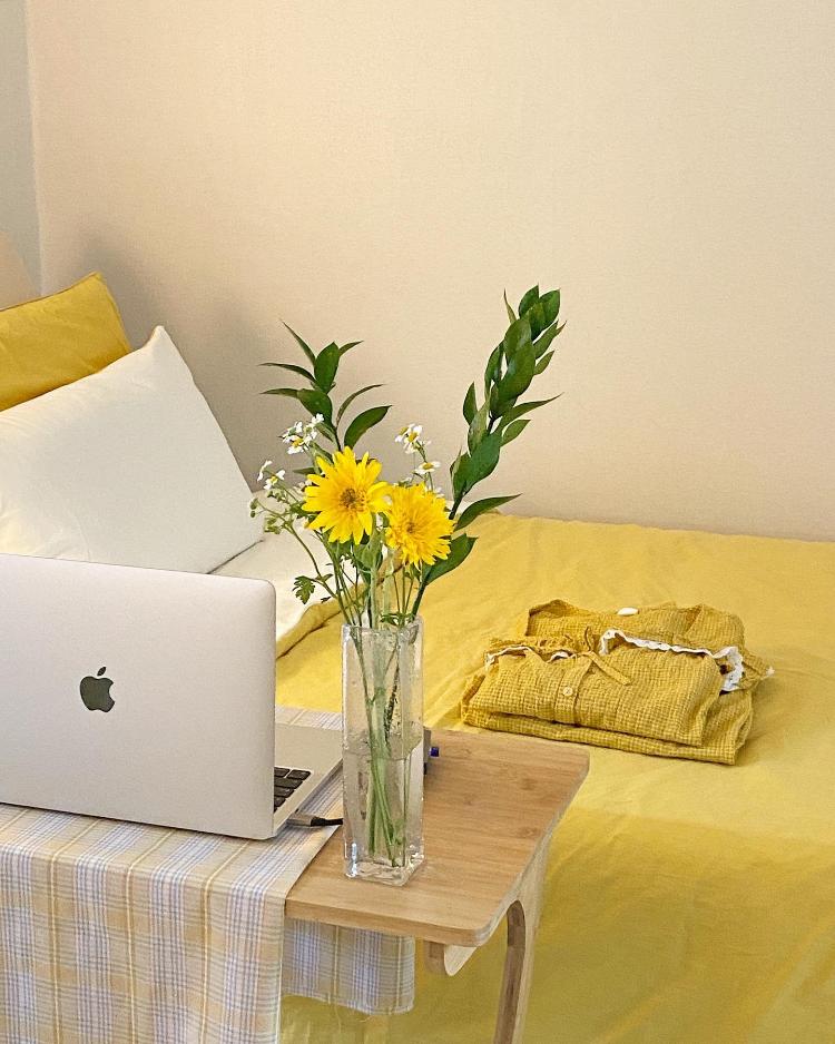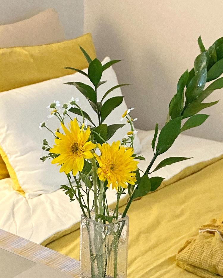 침구 체인지하면서 해바라기 꽃과 이쁜 노란 잠옷 게시 !