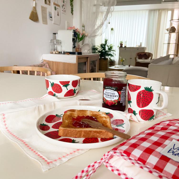 딸기 패턴 도자기라 상큼달콤한 음식들이 참 예쁘게 돋보이는 것 같아요!