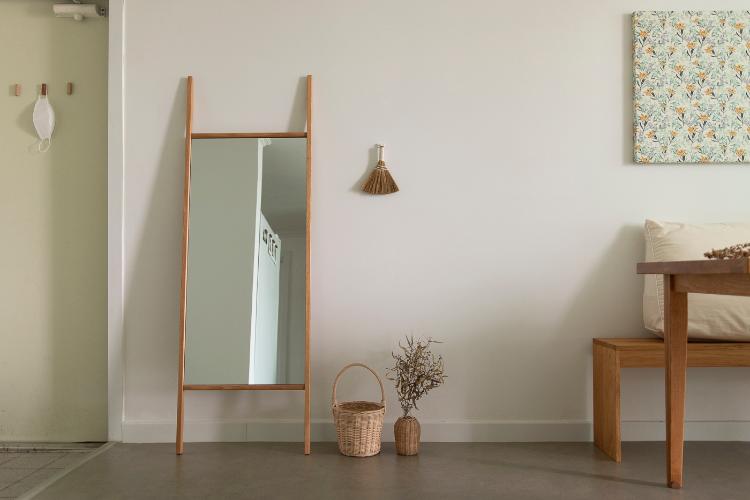 안방에 있던 거울을 현관으로 옮겨왔어요. 나가기 전에 쓱 보고 가니 좋네요:)