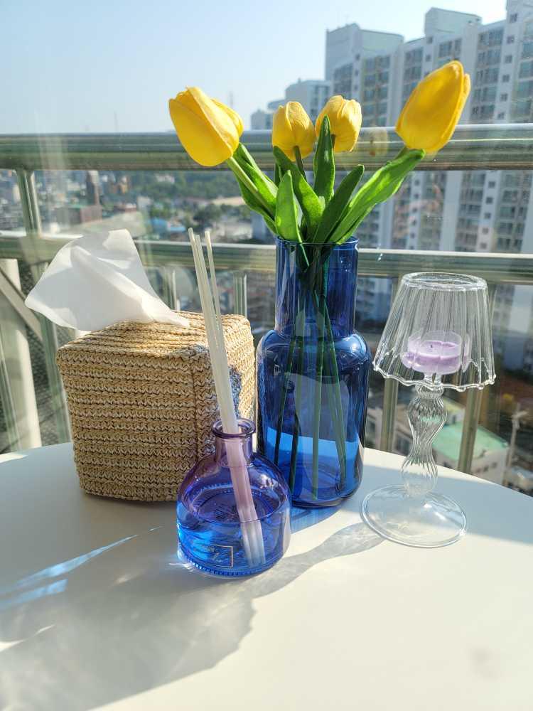 파란색 꽃병으로 홈카페에도 여름이 왔어요~
