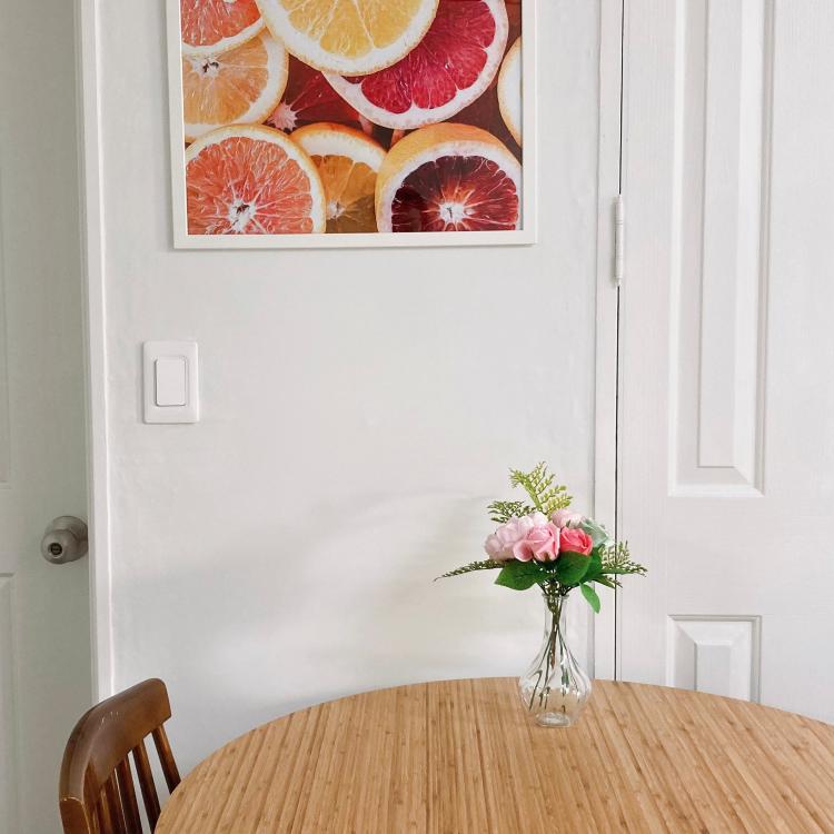 식사 테이블에는 식욕이 생길 수 있는 쨍한 오렌지와 자몽 사진으로 인화를 따로 주문을 하였어요.