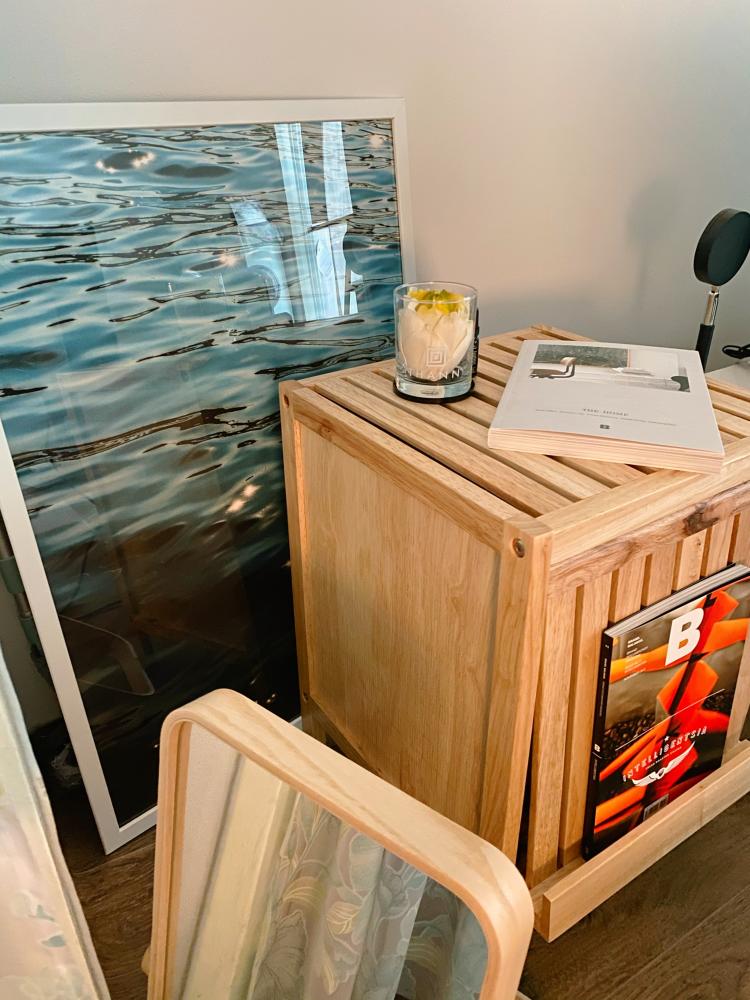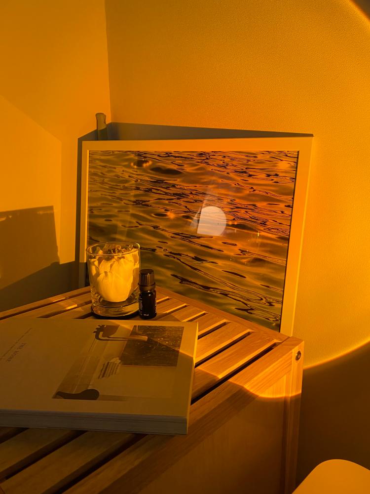 고무나무 협탁 열심히 조립했어요! 선셋조명과 함께 연출해봤어요