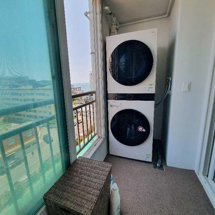 세탁기와 건조기가 일체형이라 다용도실 공간에 딱 맞출 수 있었어요.