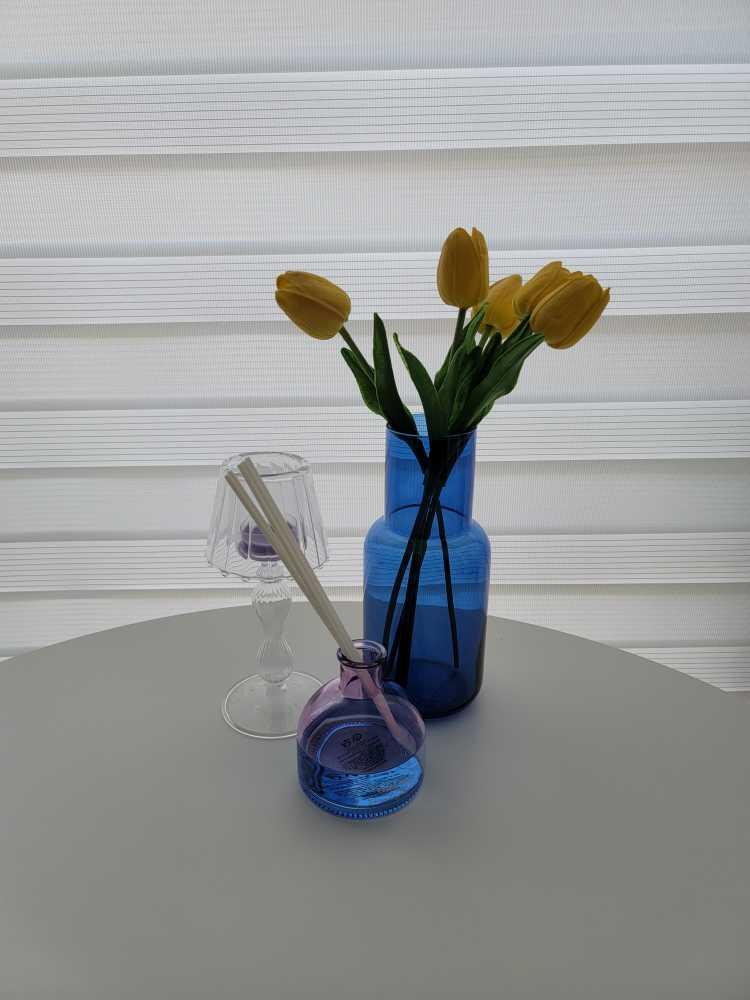 여름 분위기 나게 파란색 꽃병으로 홈카페 꾸며봤어요