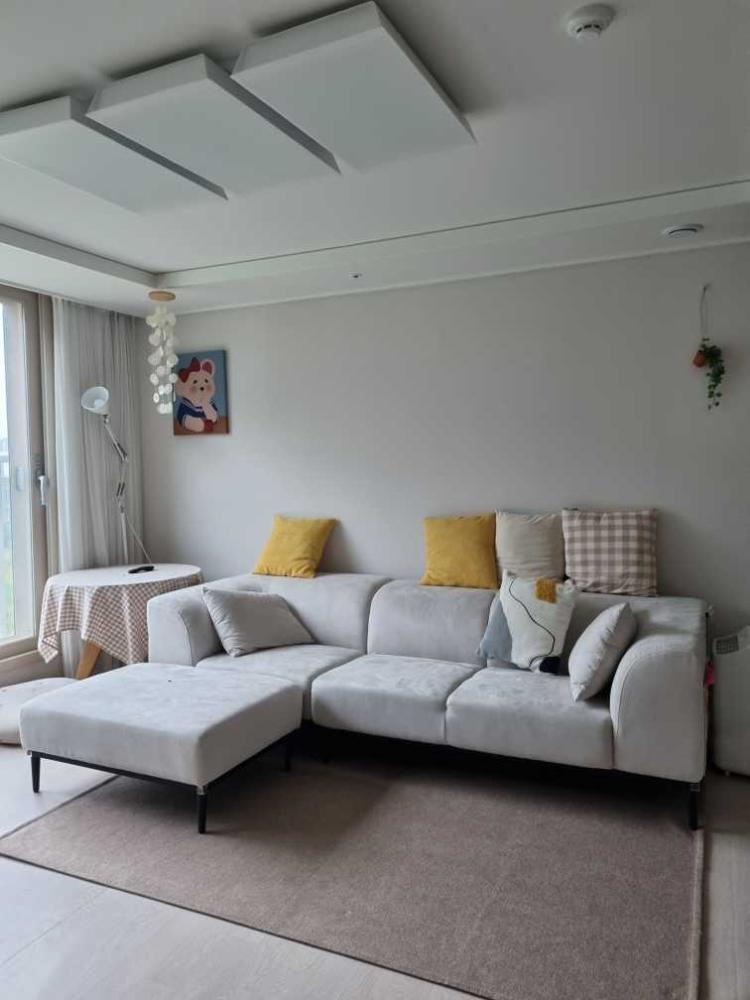 우드앤 화이트컨셉의 거실이에요.