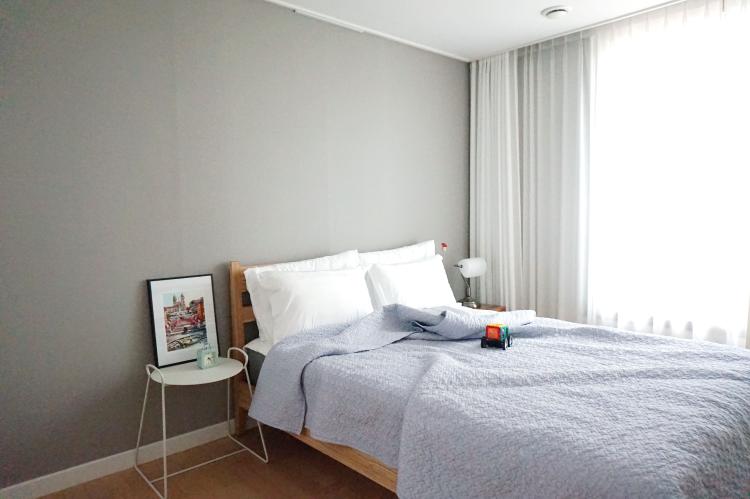 다른 변화없이 침구만으로도 침실 분위기가 다르네요.