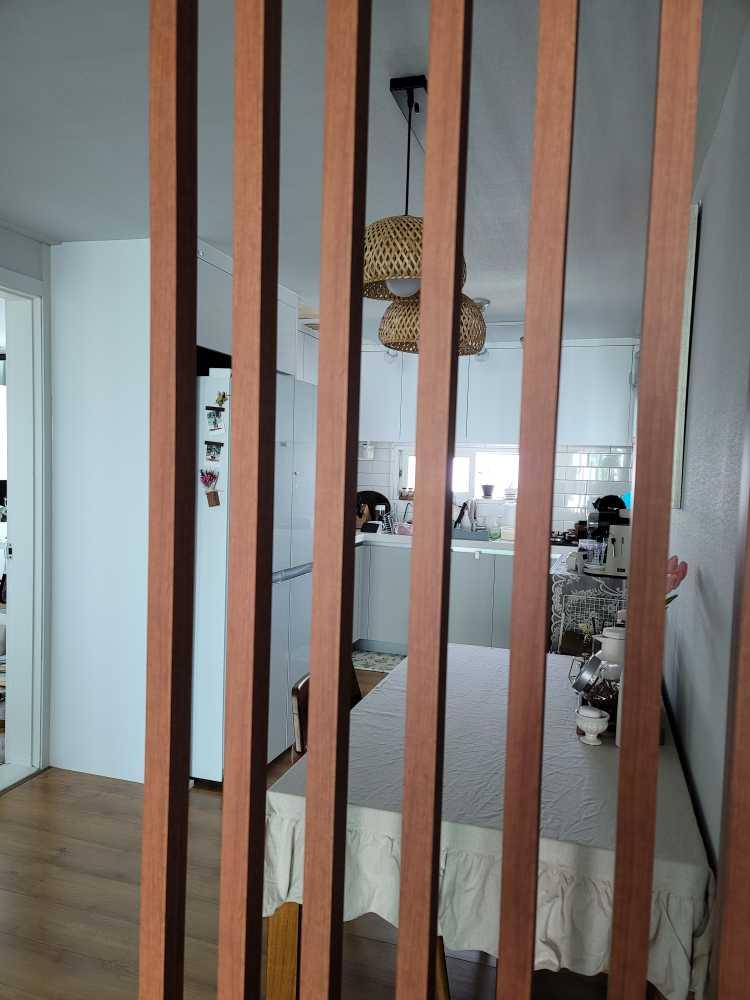 파티션 사이로 보이는 화이트 주방