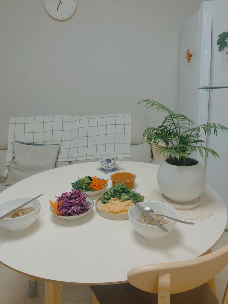 메밀 막국수! 집에서 야채 듬뿍 넣고 먹어요 : )