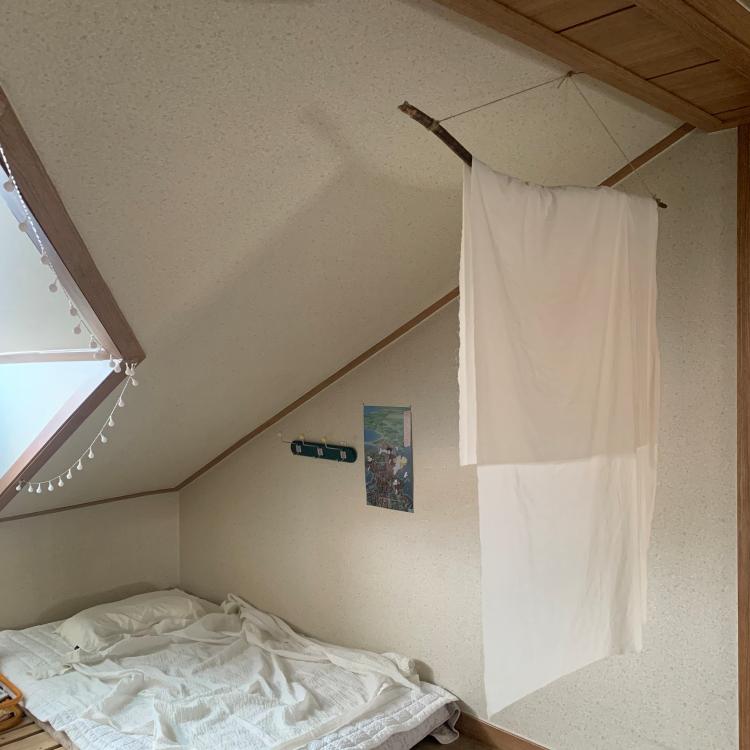 파티션대신 등산하면서 주워온 나뭇가지와 남는 천으로 구분을 뒀어요 :)