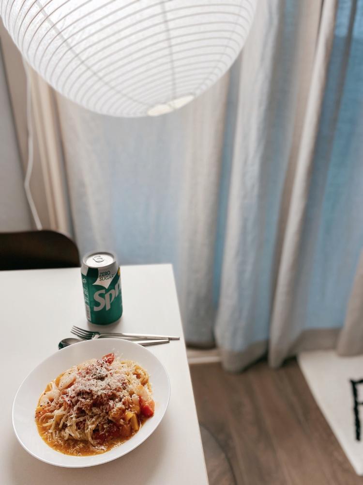 오늘은 가볍개(?) 냉털 원팬 파스타에 스프라이트 제로로 마무리 🌝 술 적게 먹어야겠어여.