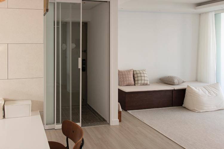 화이트 프레임 3연동 중문을 선택하고 유리는 투명 유리로 선택했습니다:)