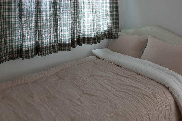 코지 스타일을 생각하며 꾸민 옷방 겸 파우더룸 겸 게스트룸 입니다:) 체크 커튼과 이불 색상이 참 맘에 들어요.