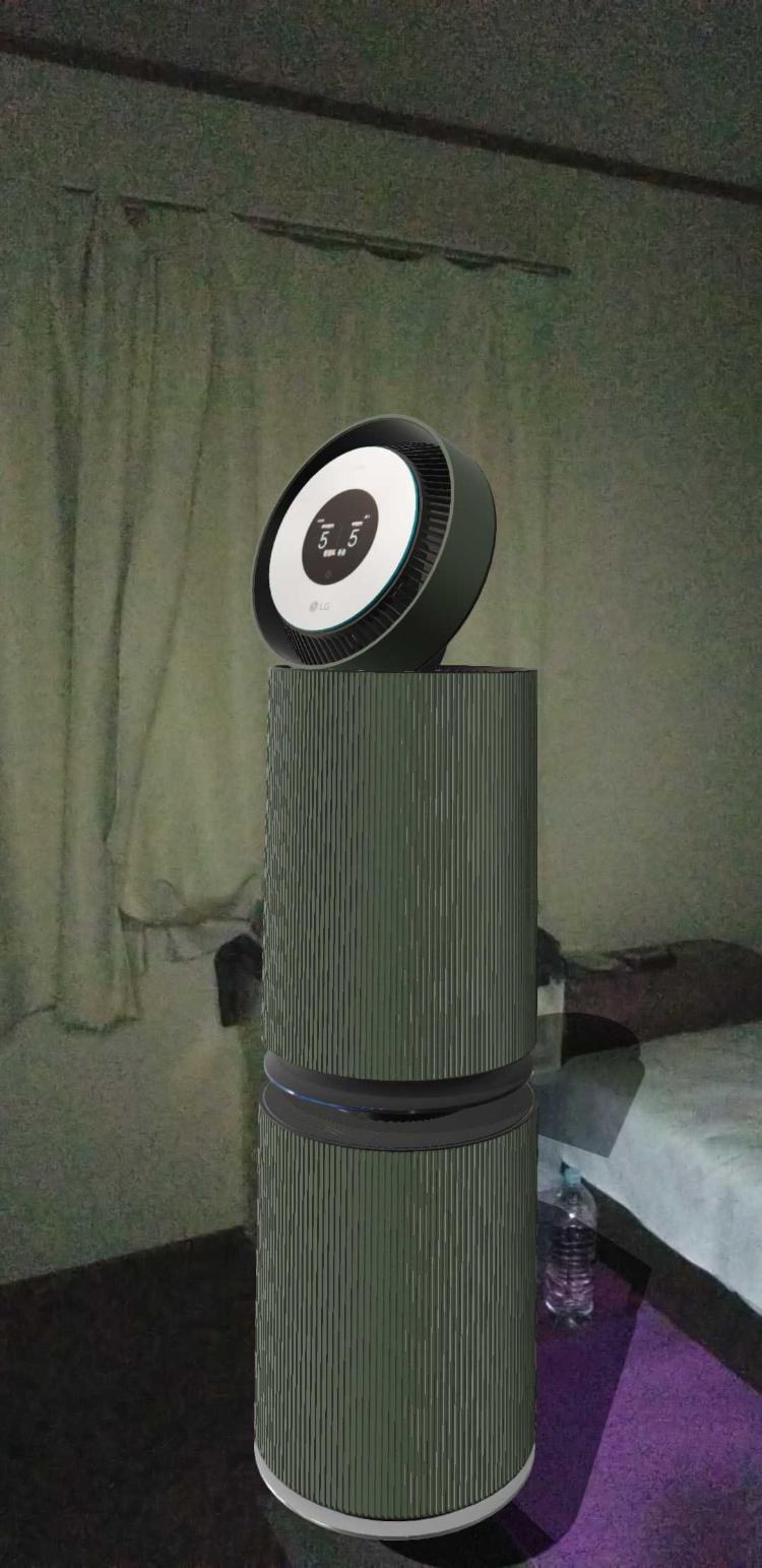 어마어마한 가격의 공기청정기 침실에 놓아보았습니다. AR배치로 보기만해도 먼지란 먼지는 다 흡수해버릴것 같네요