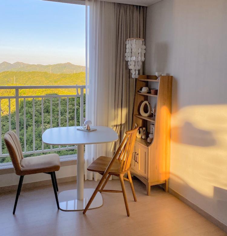 거실 한켠 빛이 잘들어오는 창가쪽에 테이블을 두고 나만의 홈카페존을 만들어 두면 오래 머물고 싶은 공간이돼요.