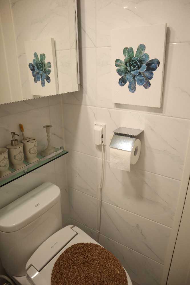 시원해보이는 액자와 라탄으로 욕실꾸미기