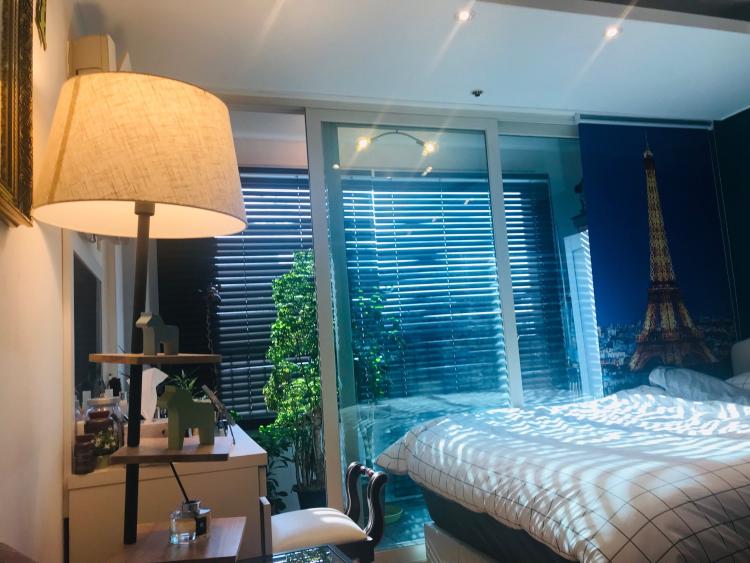 침실인데 호텔 느낌이 나게 꾸며봤습니다 베란다에는 식물이 엄청 많이.자라고 있고 나만의 화단느낌을 만들어보았습니다