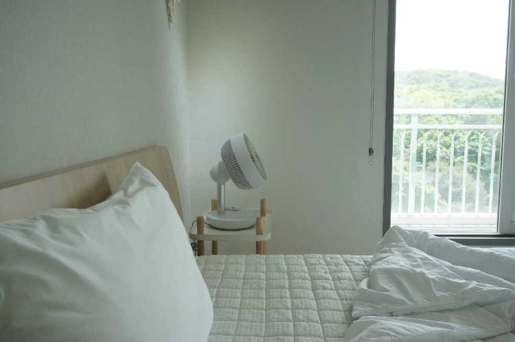 더위 타는 남편은 항상 선풍기를 옆에 둡니다