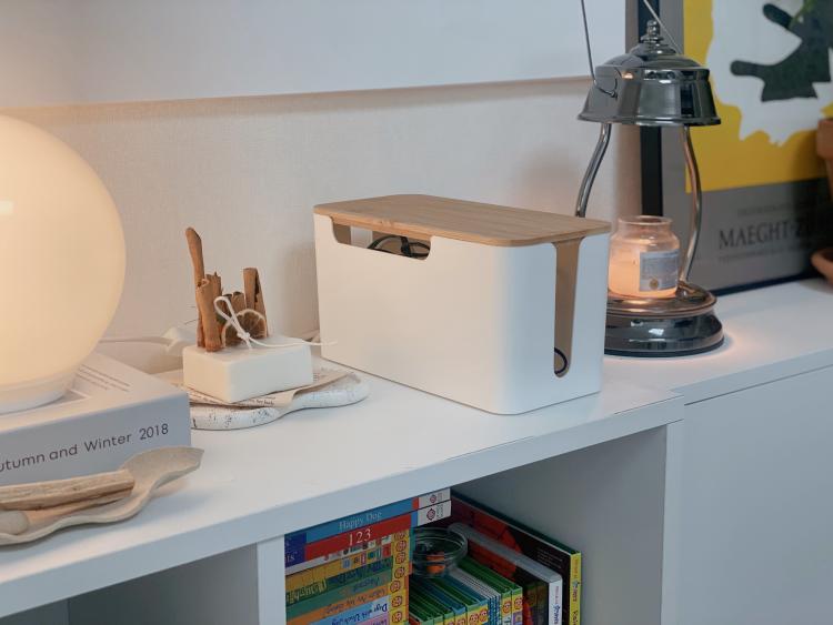 정리된 아이 책장위에 시나몬캔들이 빛을 발하고 있어요