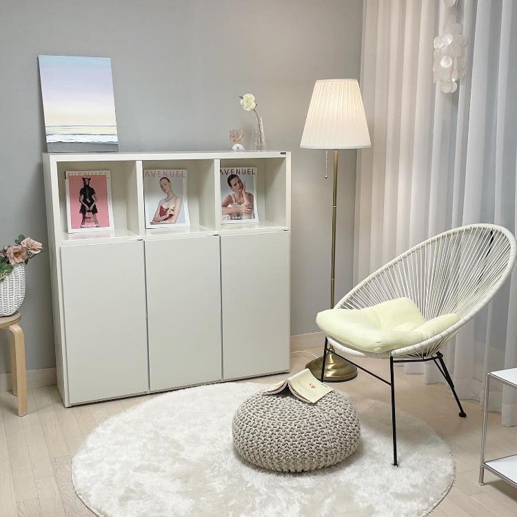 깔끔하게 책 수납하고 앞에 의자를 두니 책읽기 딱 좋은 공간이 되었어요💛
