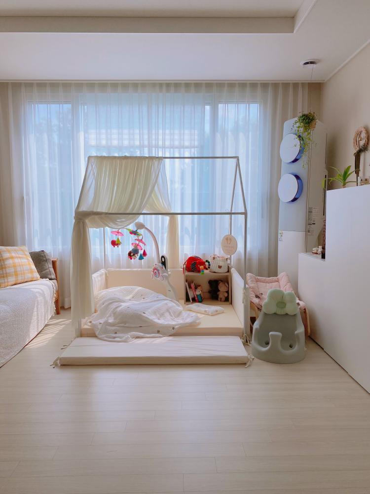범퍼 하우스 안에 육아용품을 두었더니 훨씬 정리되고 깔씀한 느낌 !