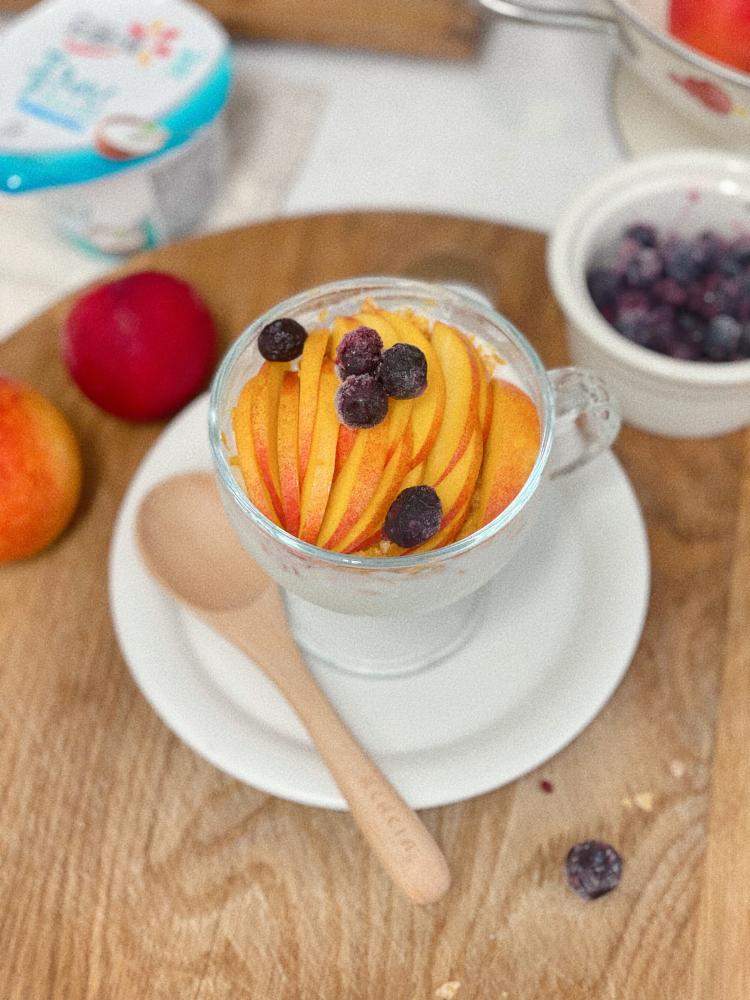 아침으로 요거트에.복숭아.올려서 먹었어요^^ 아이가 도와준 플레이팅으로 더 맛있어 보이네요