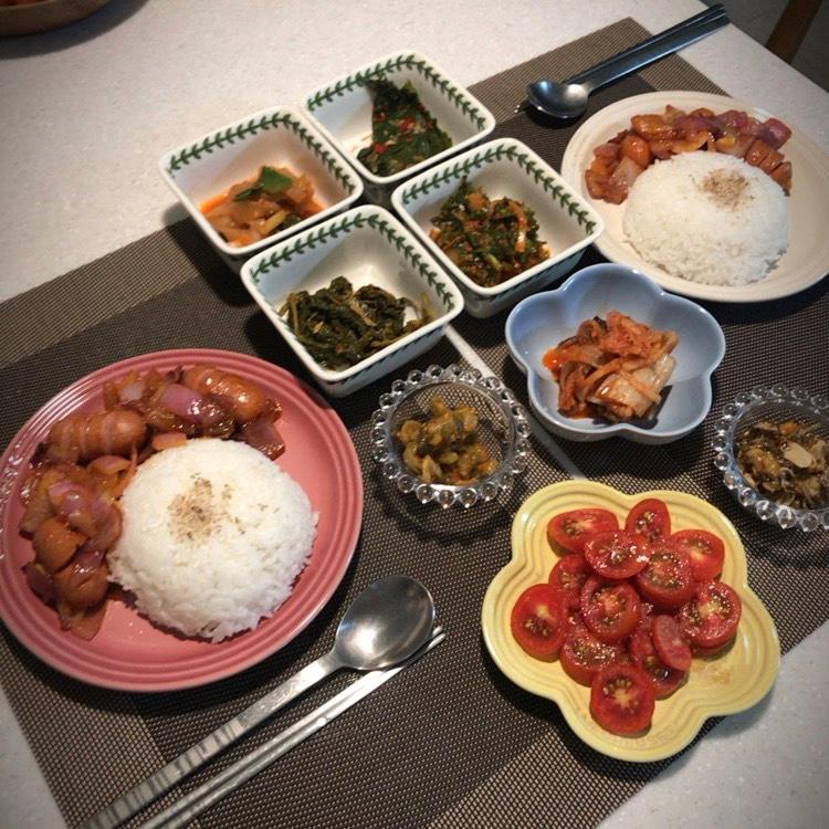 소야볶음에 부모님이 주신 반찬 다꺼내봤네용:)