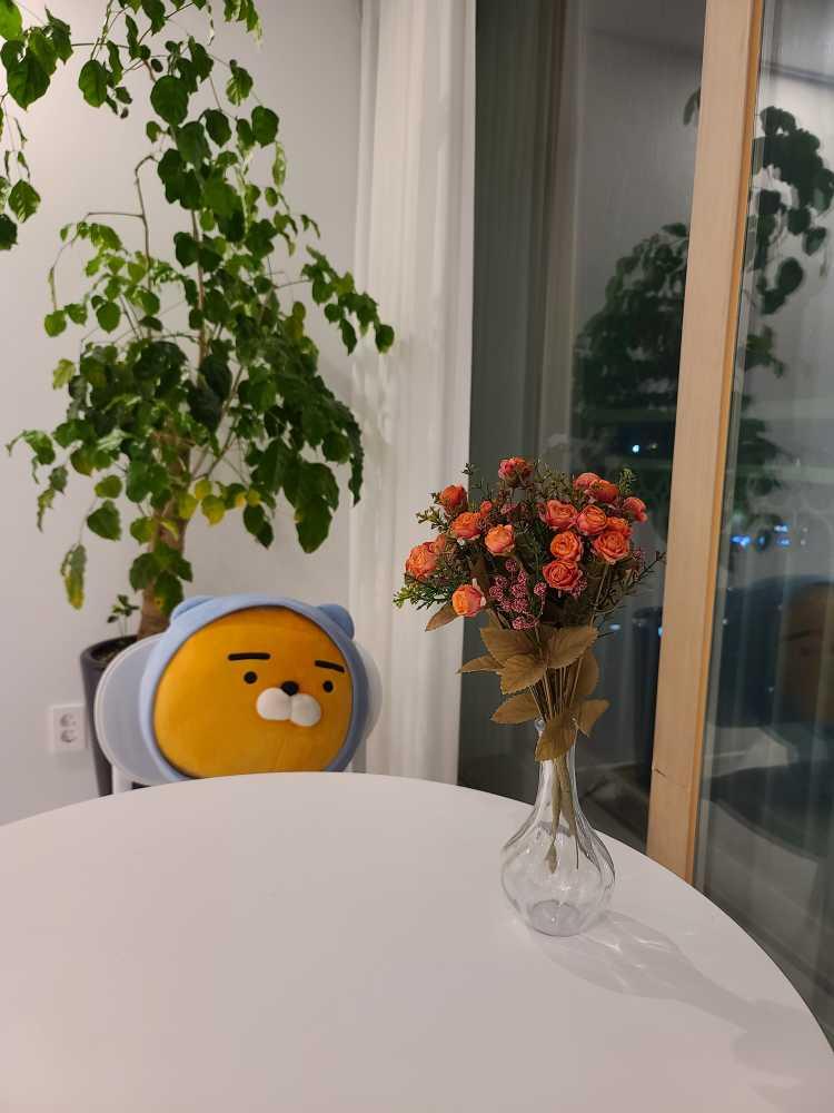 혼자 사는 싱글족이라 거실 테이블에 라이언인형을 올려두었어요.