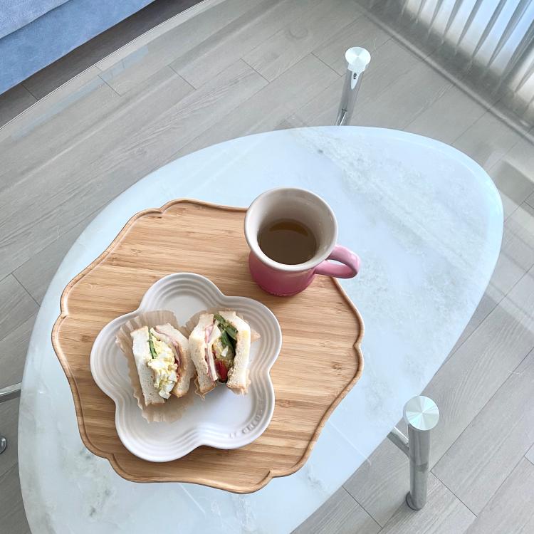 쇼파테이블에 앉아서 간단하게 샌드위치먹었어용 ◡̈