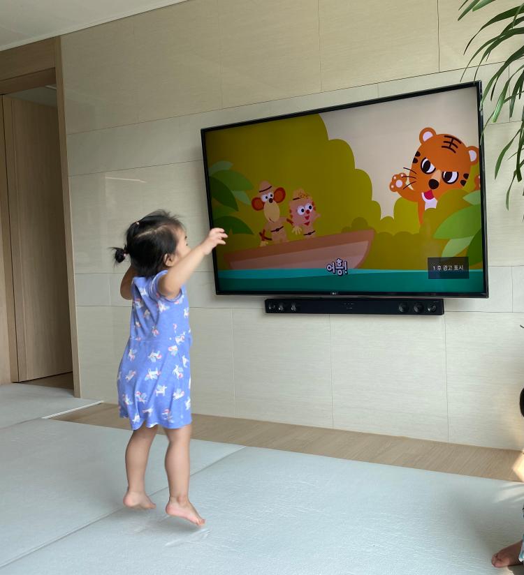 방학동안 진짜 너무 고마웠던 티비! 노래 부르며 어흥~ 따라하고 있는 둘째예요