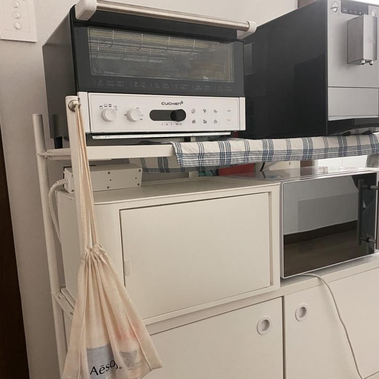 아래 원터치 수납함에는 약이랑 영양제등 보기싫은 것들이 있어요! 주방 전구도 주백색으로 교체했더니 아이보리색 조명이 좋네요 😘
