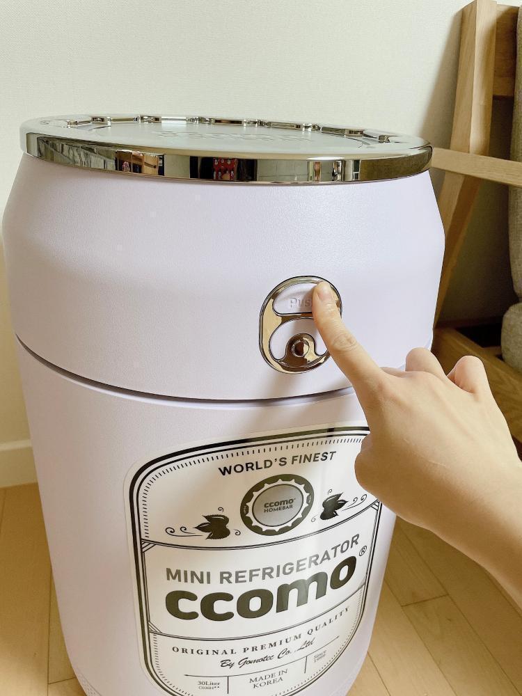 일반 냉장고 처럼 전면부 도어를 열어서 사용해도 되지만 캔을 따는 듯한 느낌으로 헤드룸의 PUSH 버튼을 눌러주면 무릎을 굽히지 않고 상단부에서 간식을 꺼낼 수 도 있어요.