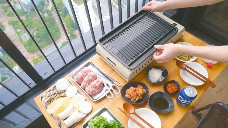 지글지글 고기 굽는 소리! 영상으로 보여드리고픈데 아쉽네요! 🥺 캠크닉 3콤보 구이바다는 중앙에도 화구가 추가되어서 열 전도를 더욱 최적화했다고 해요. 그래서 고기가 금방 고루고루 맛있게 익는답니다!