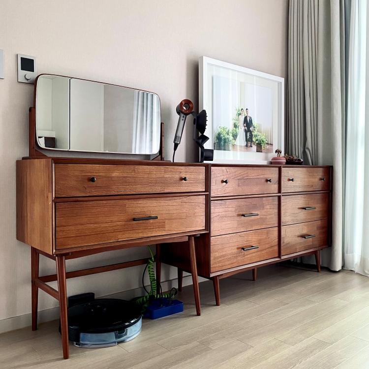 안방 화장대 밑에 숨어있는 로보락과 매일 사용하는 필수템! 다이슨드라이기에요 ◡̈ 오브제 역할도 해주는 귀여운 컬러 멀티탭에 꽂아두고 사용한답니다