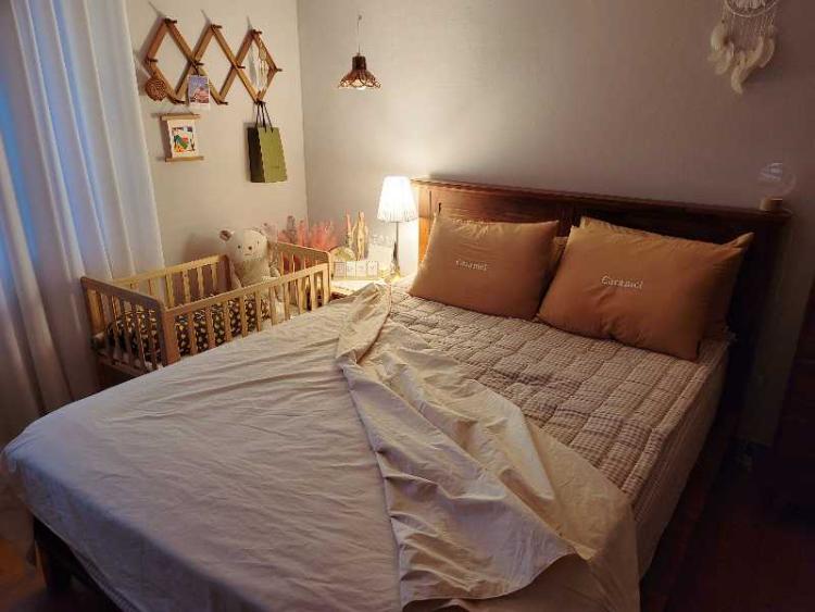 침실 분위기 좀 바꿔 보려고 원목 가구에 어울리는 침구류로 바꿔 봤어요~