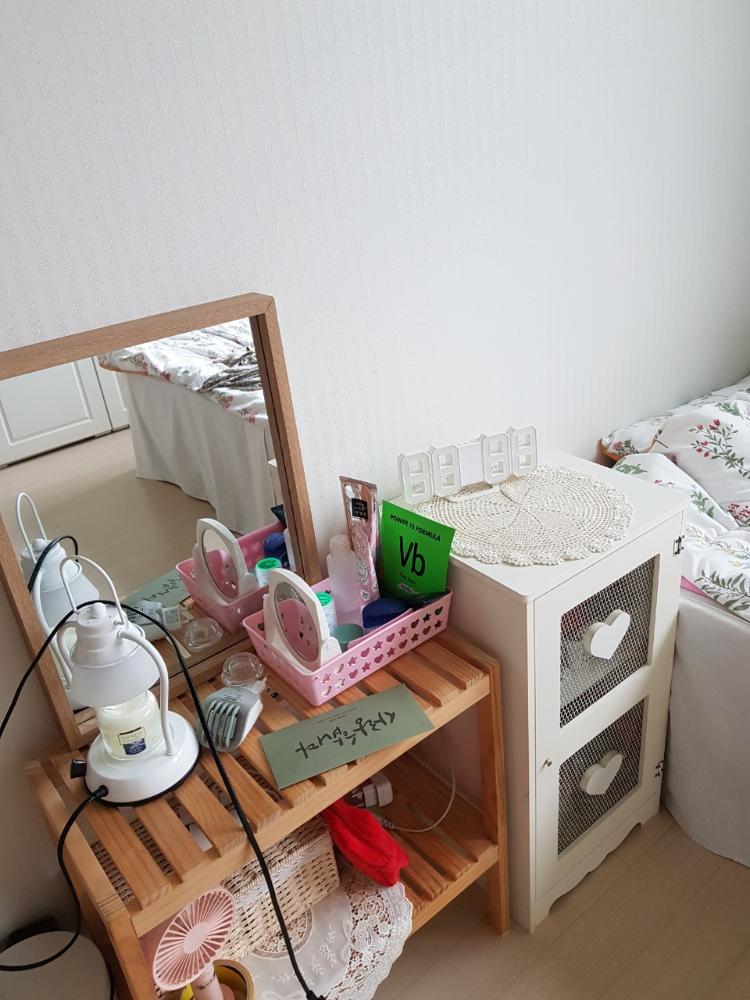 침대 옆 조그맣게 준비되어있는 좌식 화장대