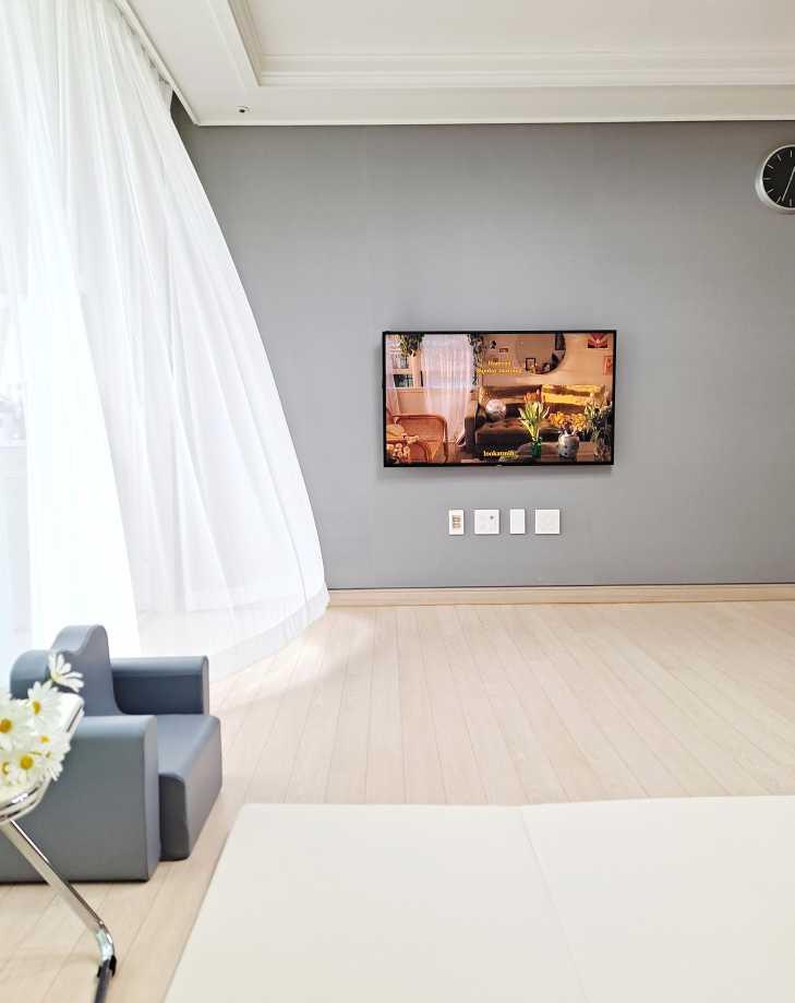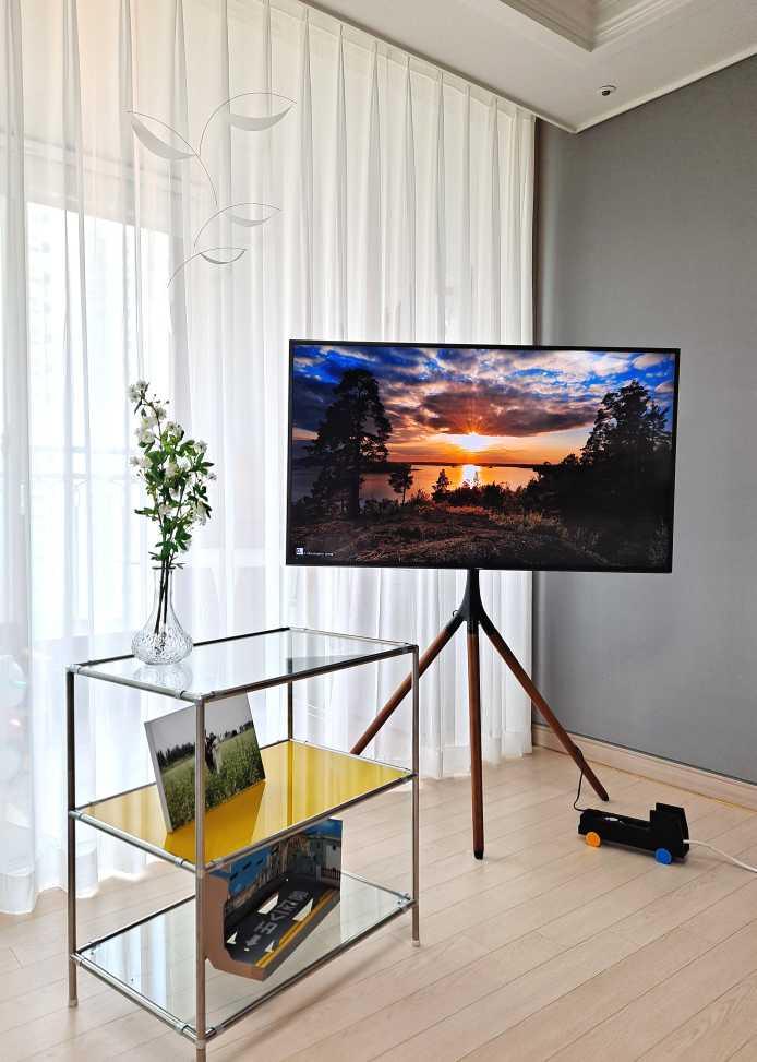 이젤 위에 티비 로망이 있어서 잠시 썼던 스탠드. 아기있는집이라 바로 벽걸이로 원상 복귀했네요 🤣😅