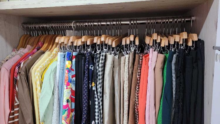 원목옷걸이로 깔끔하게 :)