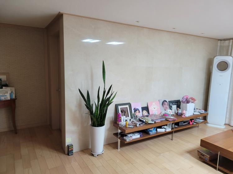 우리집 거실이에요. TV가 없고 자녀가 그린 그림으로 꾸며놓았어요.