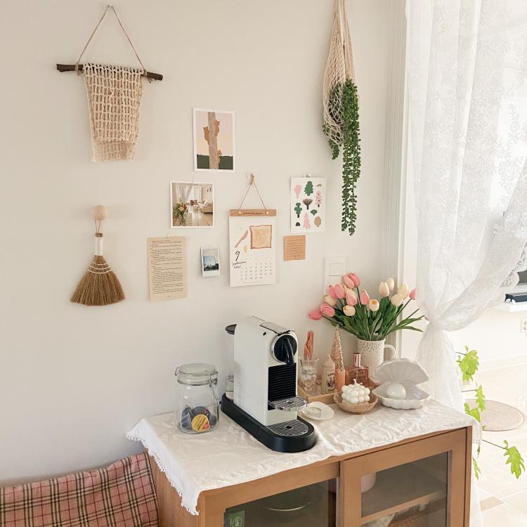 벽의 장식이 하나둘씩 늘어가는 홈카페 공간입니당 ㅎㅎ