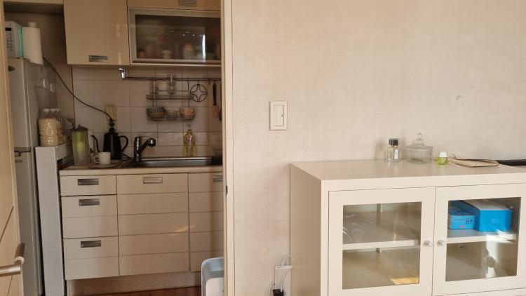 틈새 수납장을 배치한 주방입니다
