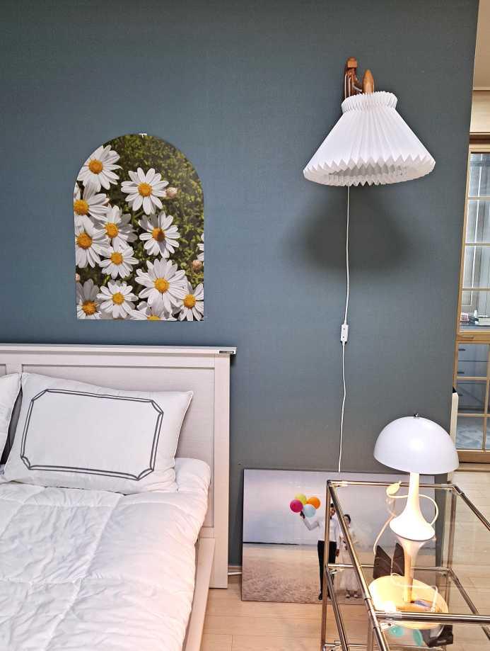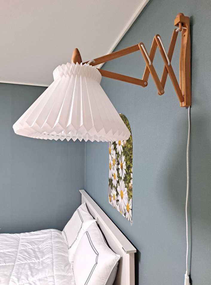 침실에는 플리츠 벽 조명을 달았어요