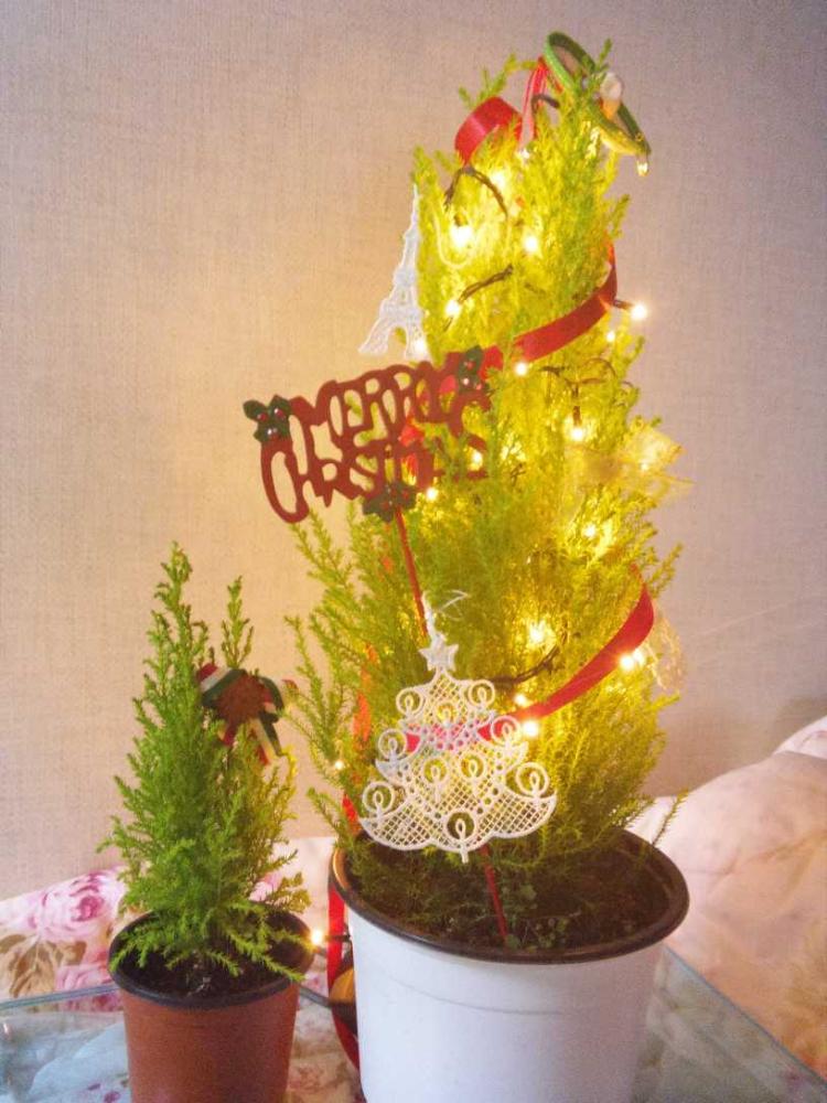 강남지하상가에서 작은 율마 두 마리를 사서 크리스마스 트리로 장식해봤어요!