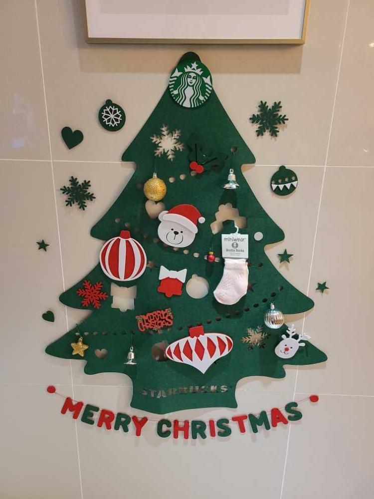 벌써 3년째 재활용하고 있는 스타벅스 크리스마스 트리지만 이번엔 내년에 태어날 우리 아기 양말도 걸어줬어요 :)