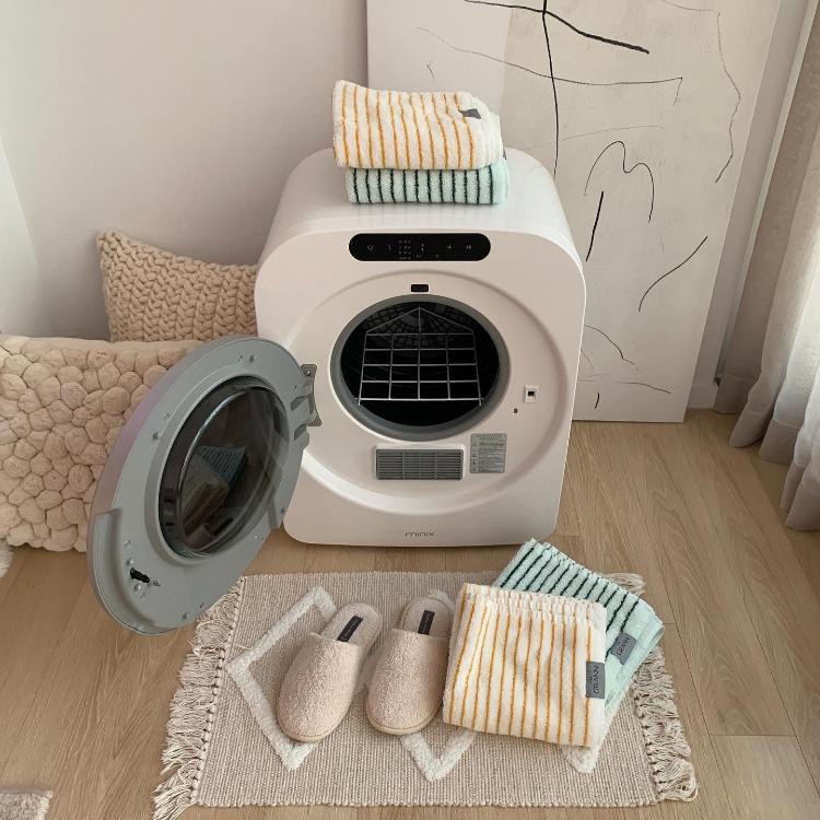 사이즈마저 귀여운 미닉스 미니건조기는 건조뿐만 아니라 탈취, 살균, 의류관리까지 4가지 기능을 모두 담아 작지만 야무져요.
