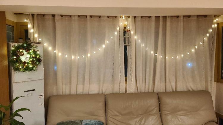 리스와 전구로 꾸며놓고 크리스마스 기다려요