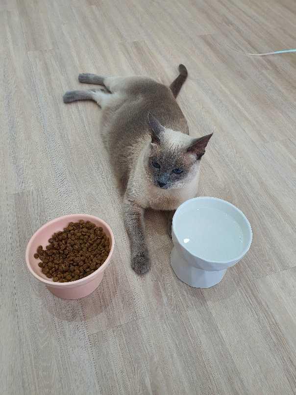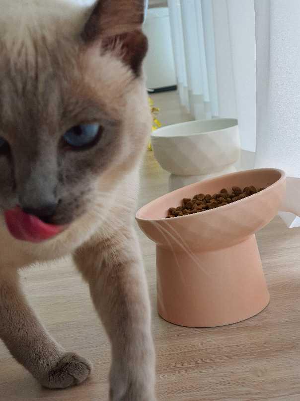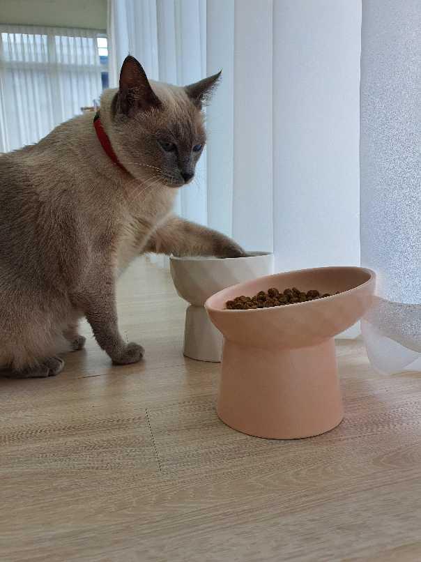 고양이 밥그릇을 땅에 두면 목이 꺾이고 소화하기가 힘들다고 해요.