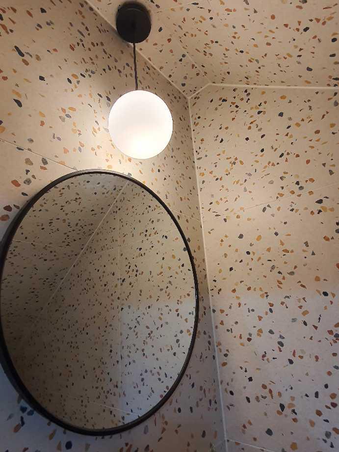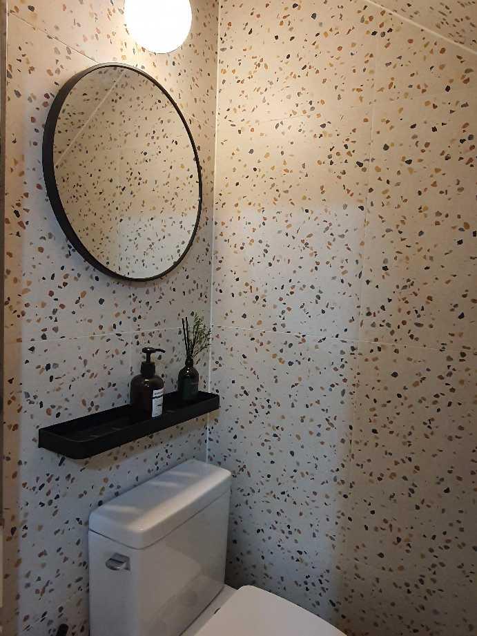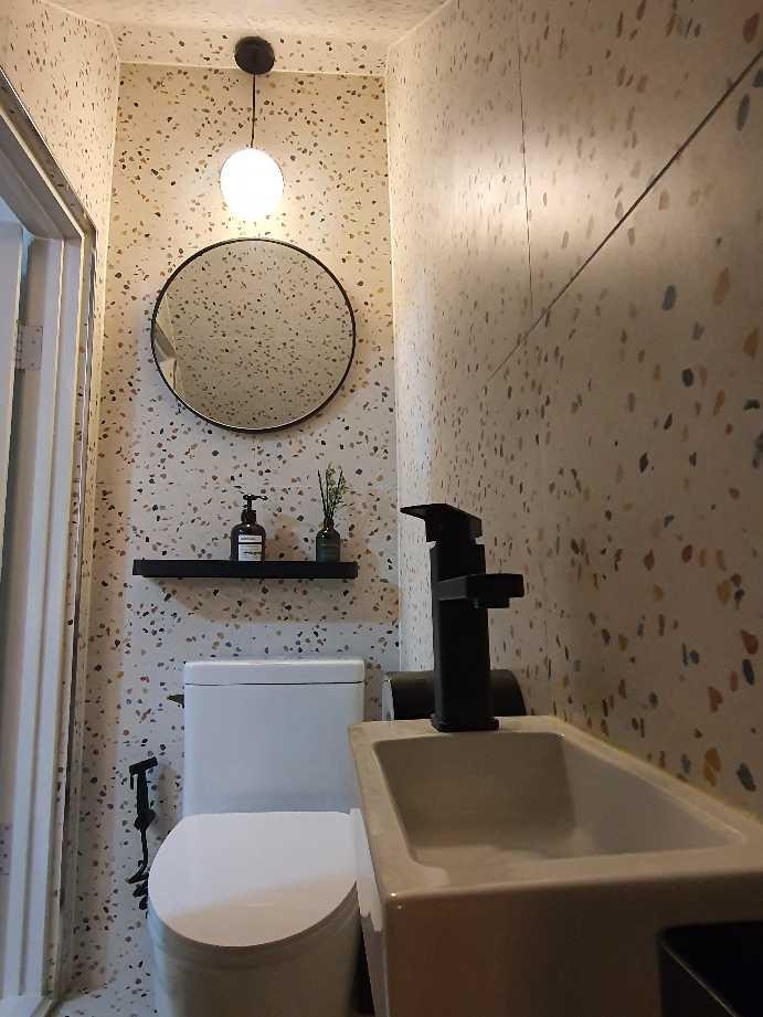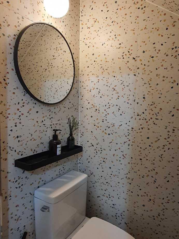 진짜 작은 욕실에는 무조건 거울을 두시고 줄눈을 최소화 시킬 수 있게 600각 타일을 시공하시는 것을 추천드려요.