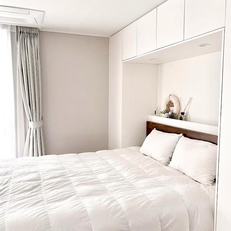 아늑한 침실이에요 ◡̈ 침대장 시공으로 수납, 아늑함 모두 잡았어요!
